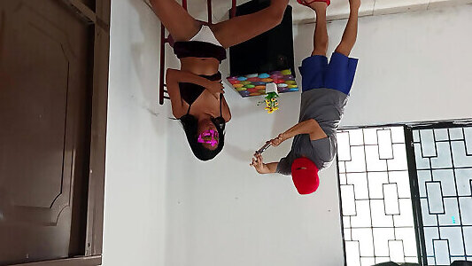 Stepfather can&039;t resist his nerdy kerala li playing on his gaming chair and cums on her ass!