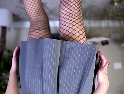 Female Dom Sadism & Masochism – Fetish Domina and marionette lady demonstrate fuckboxes and pantyhose