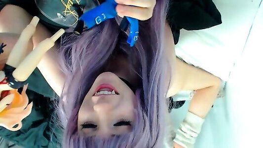 Kitten banging her taut bum deep with phat fake penis